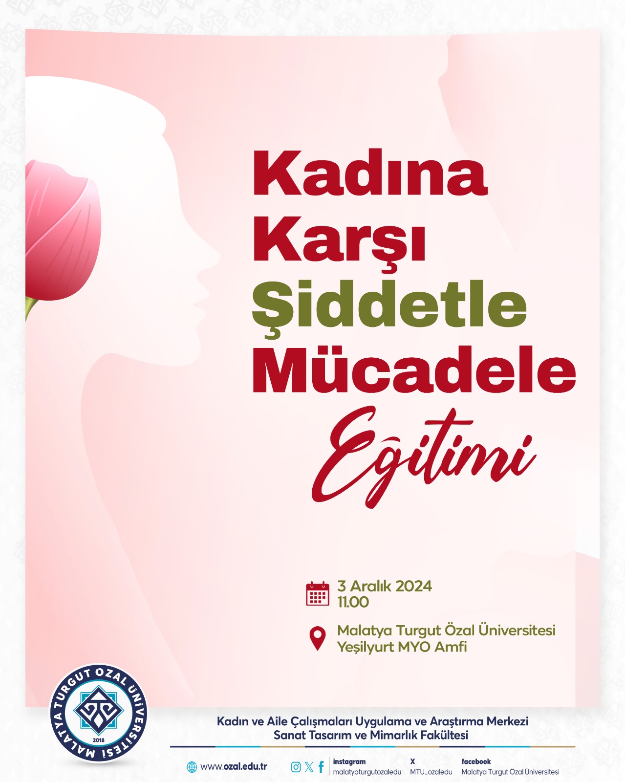 Kadın ve Aile Çalışmaları Uygulama ve Araştırma Merkezimiz tarafından 25 Kasım Pazartesi 14.00'te Üniversitemiz Battalgazi Konferans Salonunda 25 Kasım Kadına Yönelik Şiddete Karşı Uluslararası Mücadele Günü Kapsamında "Dönüşen Dünyada Kadın" konulu panel düzenlenecektir.