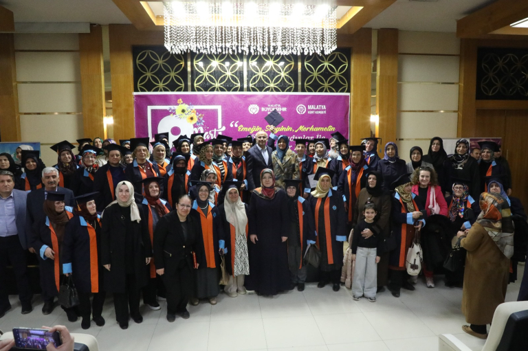 Celebrating International Women's Day, Saliha Bulut, Chairwoman of the Malatya City Council Women's Assembly, said, "The world is becoming more beautiful and meaningful with women. Today, we are talking about violence and women's rights. No matter how extensive the rights are, they will not be sufficient without the necessary education and deterrent penalties.‘ Emphasising that women receive training in many areas through the Women's Academy programme, Bulut said, ’Today, we are also holding our women's certificate ceremony. I would like to thank Malatya Metropolitan Municipality, Malatya Turgut Özal University, and our university's esteemed faculty members for their support."