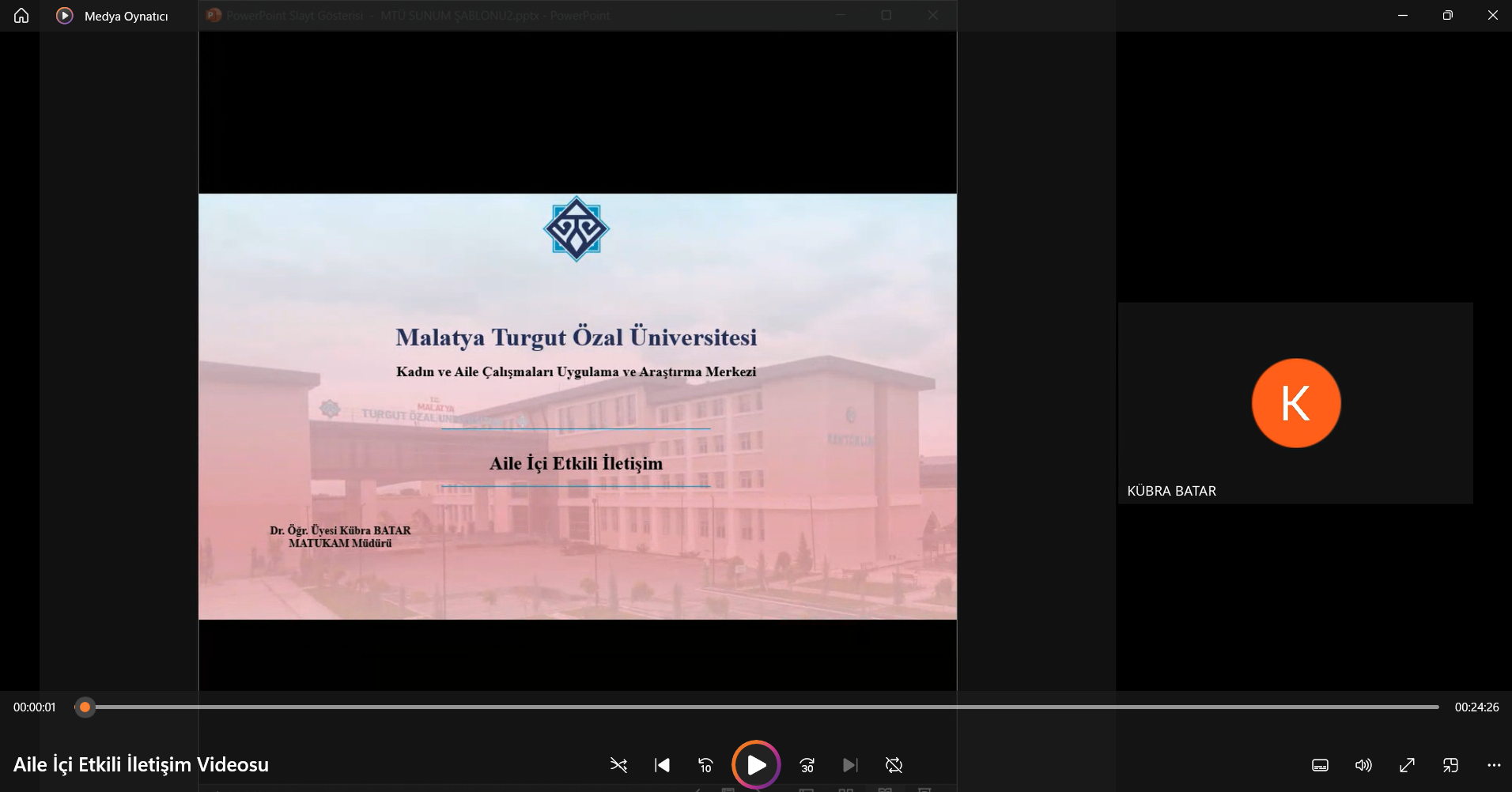 Malatya Turgut Özal Üniversitesi Kadın ve Aile Çalışmaları Uygulama ve Araştırma Merkezi (MATUKAM) Müdürü Dr. Öğr. Üyesi ...